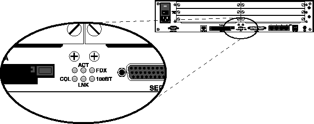 (10BaseT, and COAX (10Base2), which are lit when the interface is in use. The ACT and COL